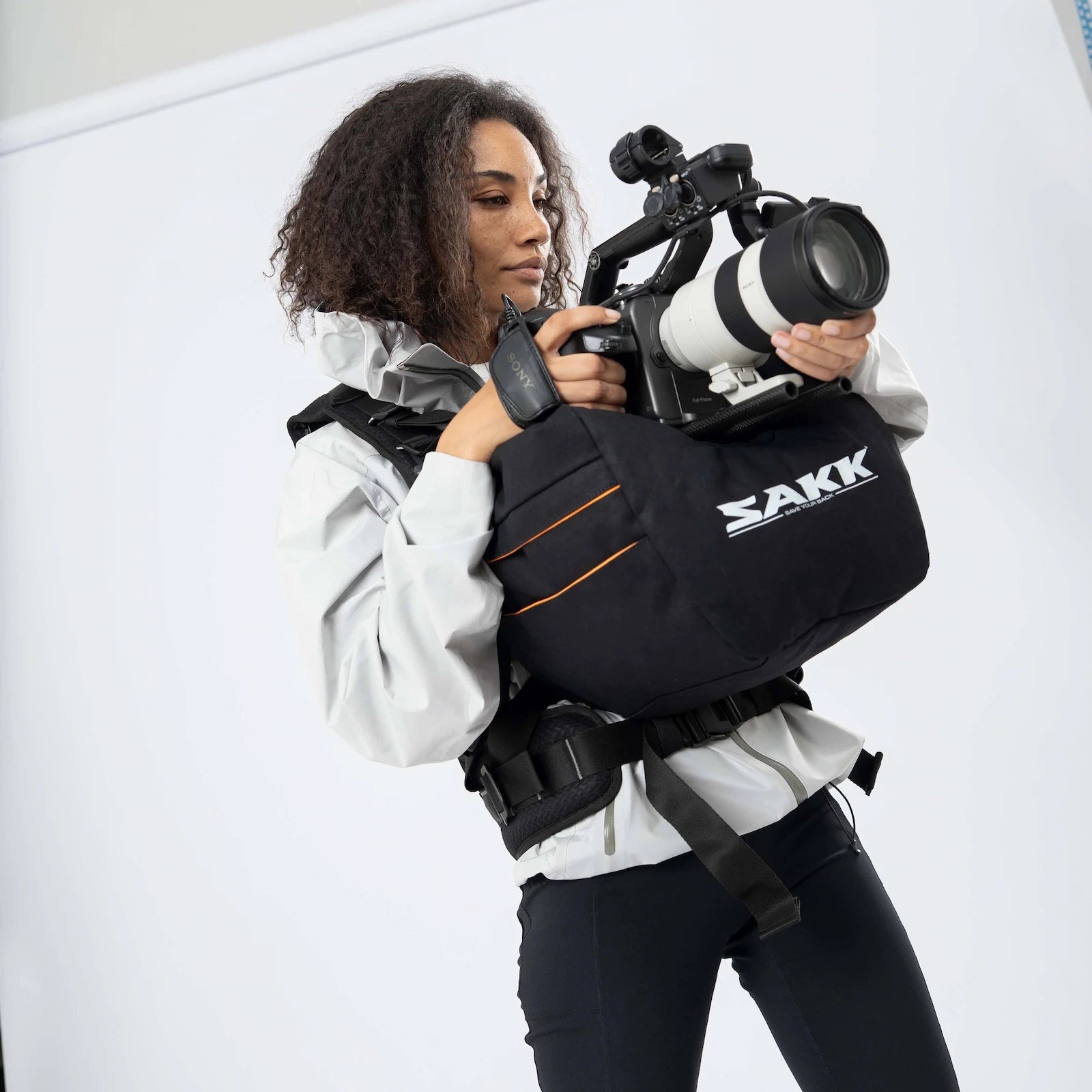 The Sakk Attach™ is designed to support a wide range of camera setups, from compact mirrorless bodies to fully rigged cinema systems. It comfortably accommodates cameras such as the Sony FX6/FX9, Canon C70, RED, Blackmagic URSA, and rigged mirrorless models like the FX3. Built for stability and comfort, the full-body harness evenly distributes weight, making it suitable for cameras up to 2-12 kg (4–30 lbs). The custom saddle features enhanced mounting and attachment points, offering a secure, seamless connection to the harness, ideal for professional use in dynamic shooting environments.