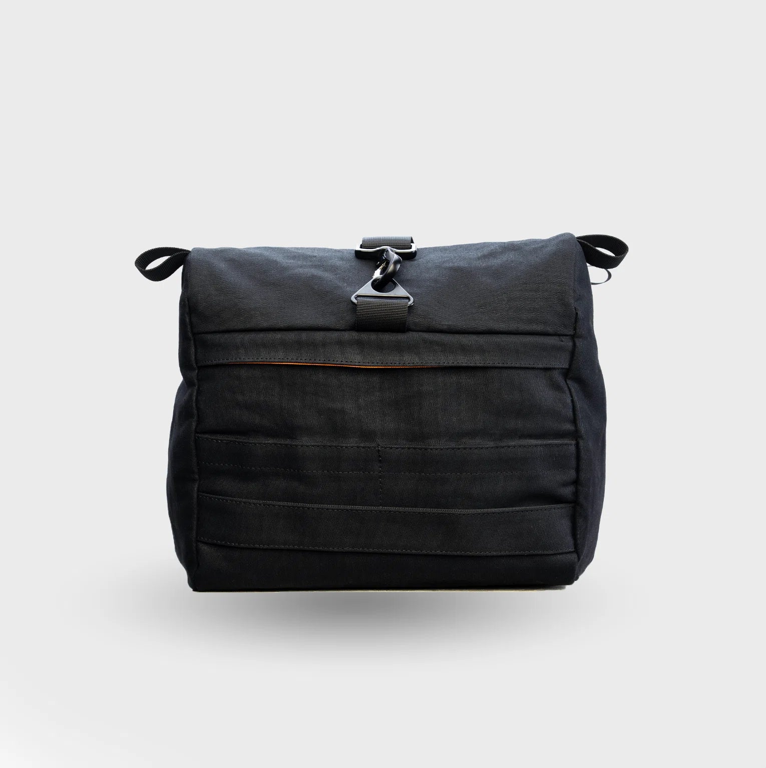 The outter material is made from a water-resistant, highly durable canvas, whilst the interior lining is a fluoro orange will cotton. Its rugged outer shell provides reliable protection, while the interior is filled with high-density polystyrene beads that mould to any surface, offering stable, adaptable support for a wide range of camera setups.